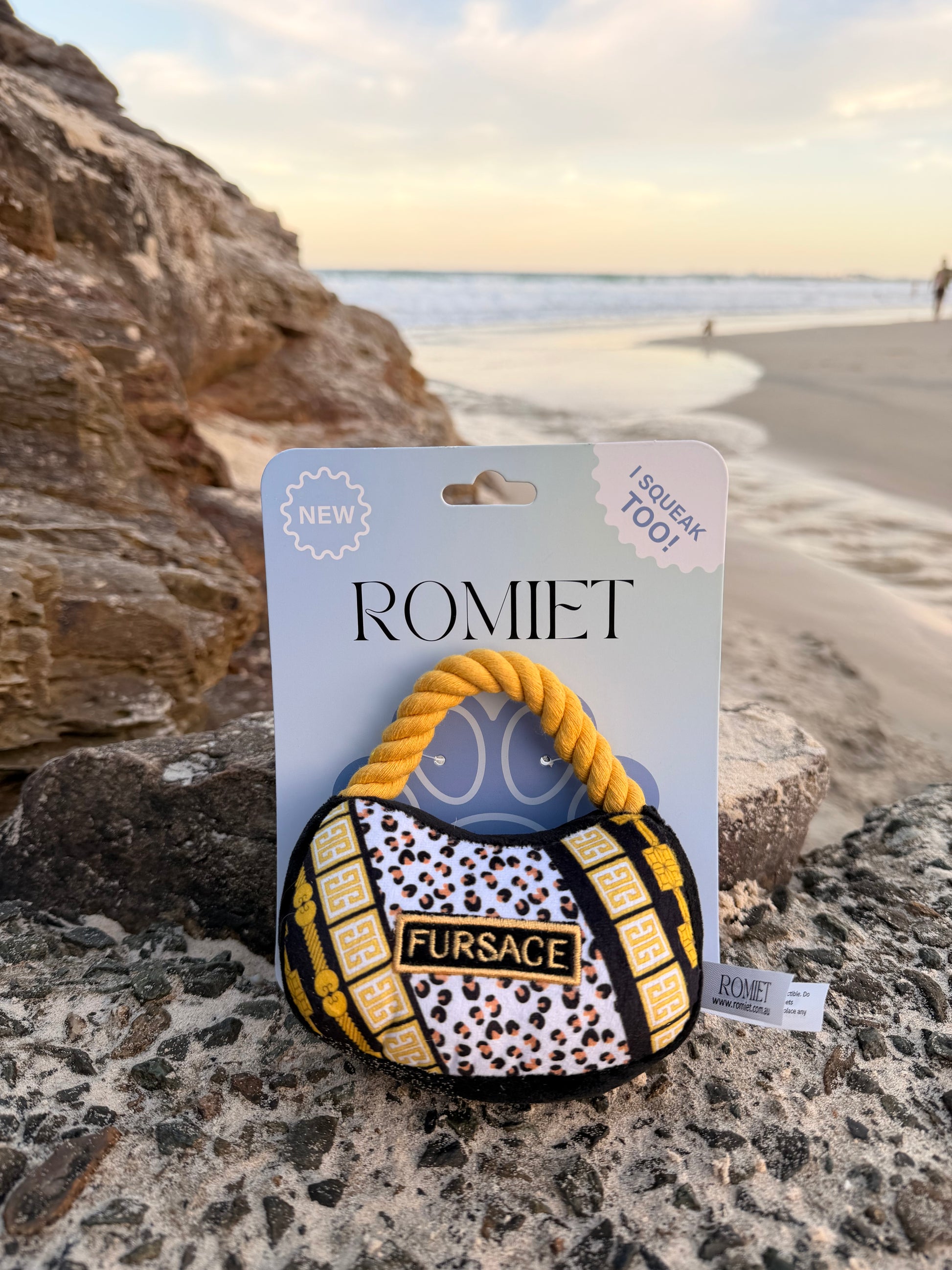 The FURSACE Squeaky Dog Toy is a stylish, plush handbag-inspired toy designed for pups who love a little luxury with their fun.